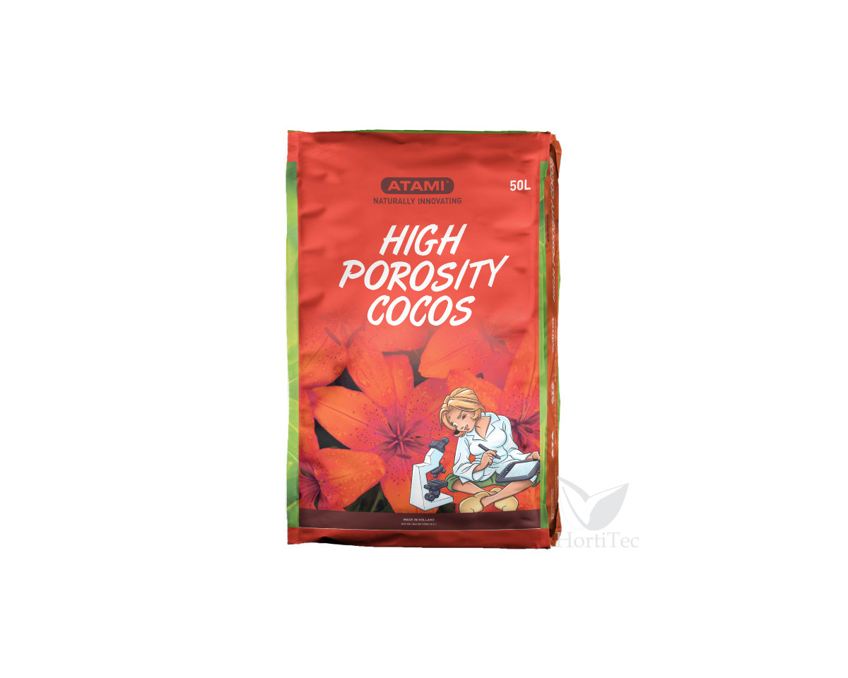 High Porosity Cocos combina las propiedades del sustrato de coco de ATAMI con las de la perlita para aumentar la aireación del sustrato. Es sabido que el coco de ATAMI es muy limpio y bajo en sales perjudiciales, mientras que también contiene una fertilización equilibrada. Para lograr esto, el coco se madura, se lava, se tampona y se fertiliza ligeramente.
